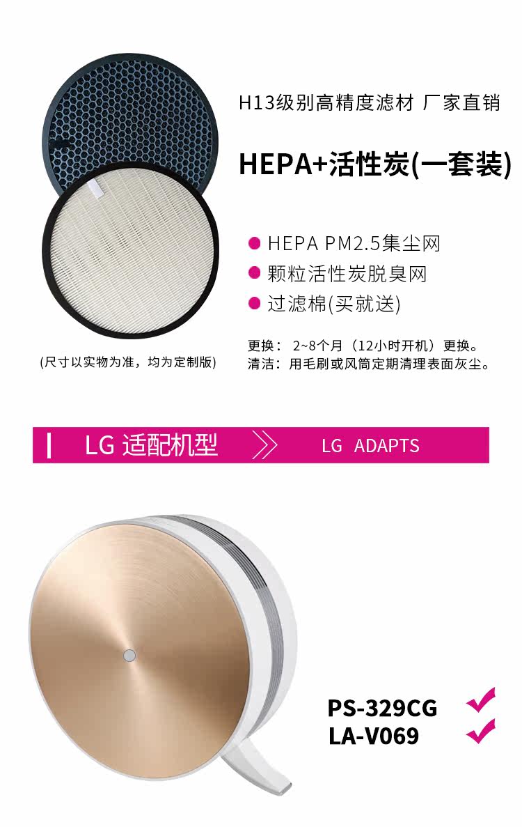 配LG空气净化器过滤网PS-329CG/LA-V069滤芯hepa活性炭除甲醛雾霾