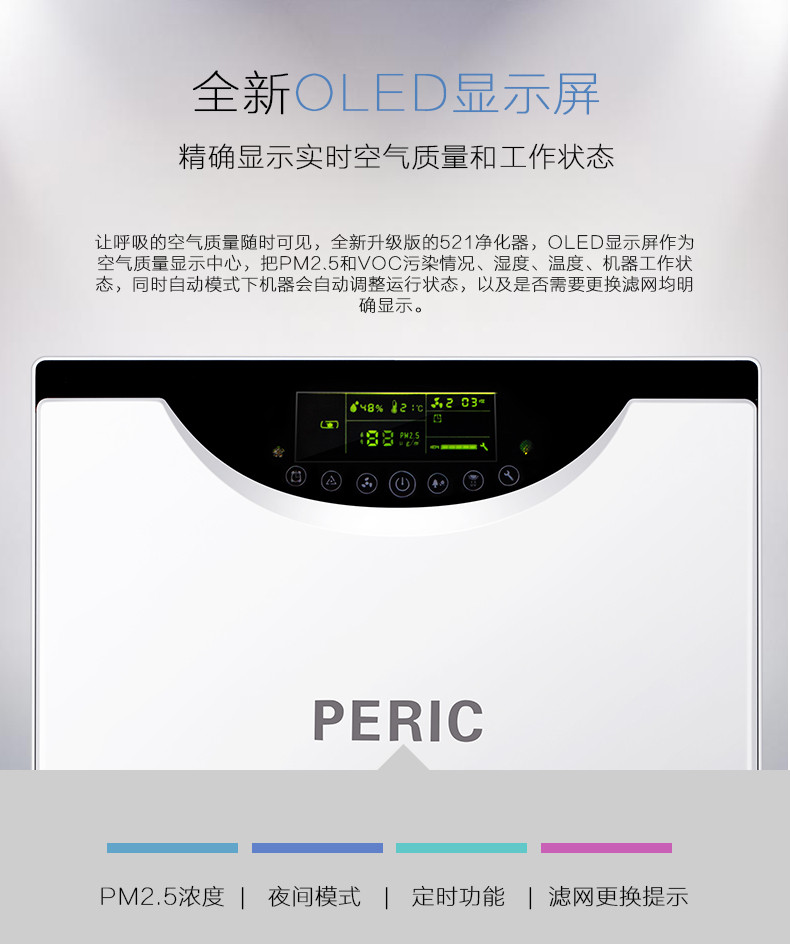 派瑞 空气净化器 KJZ-521 五大功效智能监测家用办公区医院等除霾