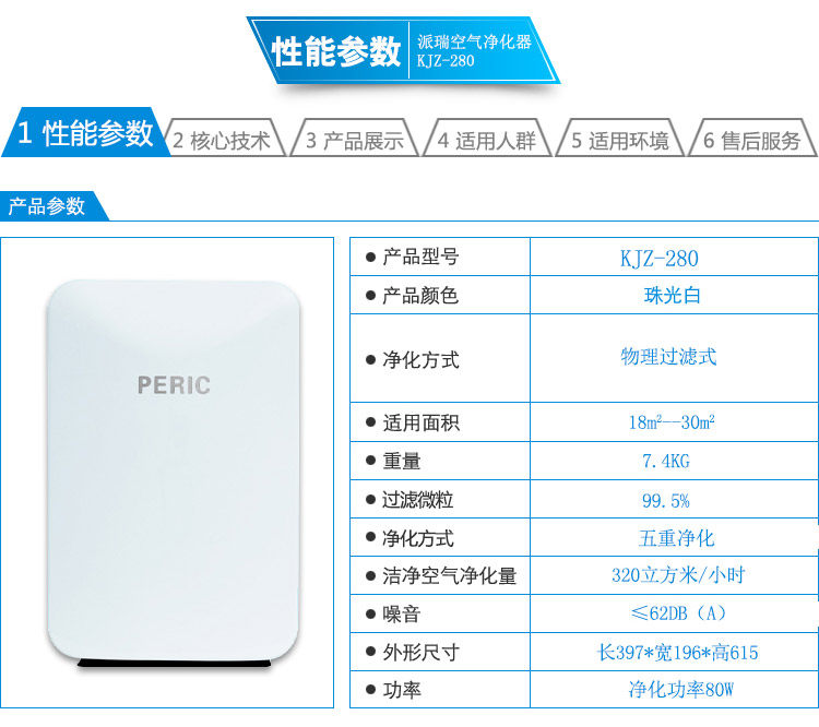 派瑞空气净化器KJZ-280,新房装修除甲醛除苯PM2.5,负离子释放