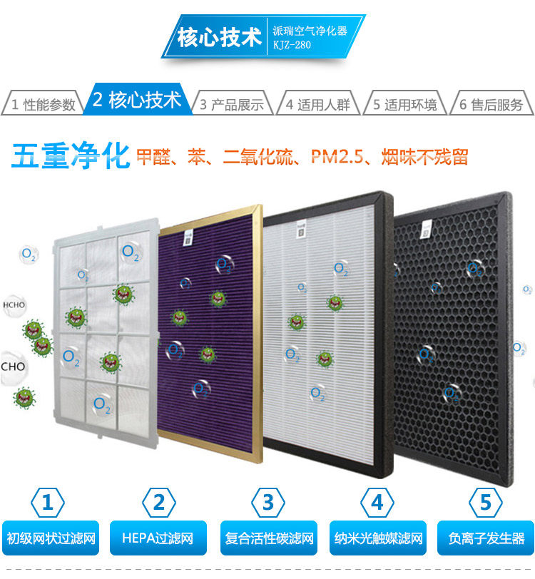 • 工作原理:活性炭 负离子 HEPA技术