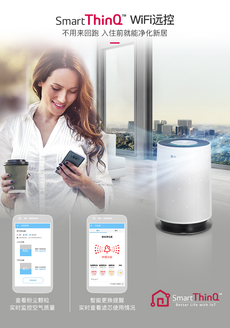 LG AS55GDWL2 韩国进口空气净化器 家用卧室除雾霾PM2.5甲醛
