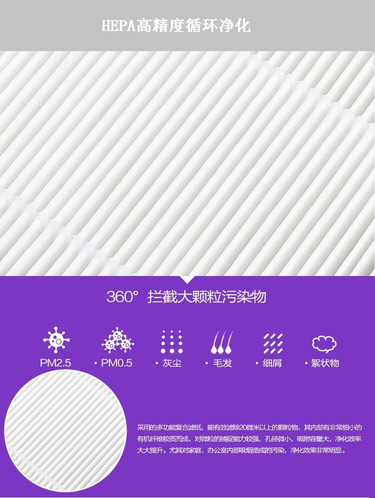 HEPA过滤网:除PM2.5 雾霾 二手烟等