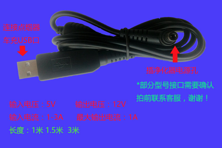 3M飞利浦cp/ACA/slimline海尔Q4沃讯车载空气净化器USB通用电源线