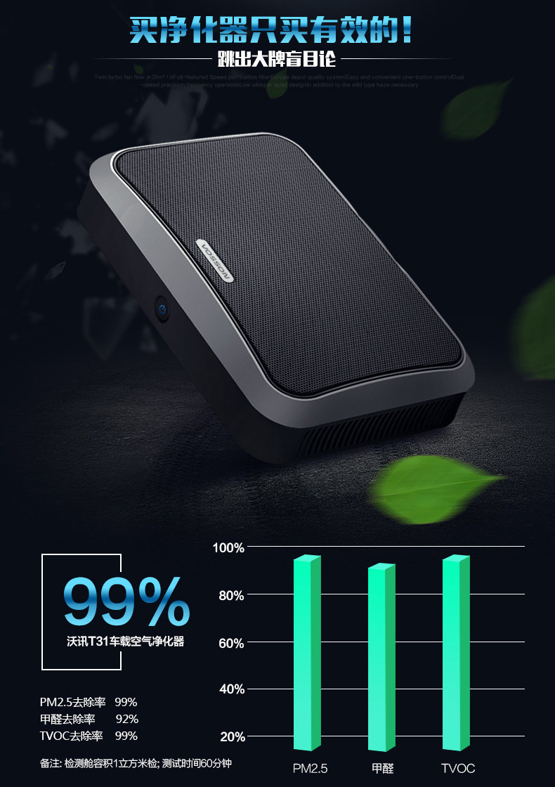 沃讯T31车载空气净化器车载净化器汽车净化器除甲醛PM2.5异味烟味