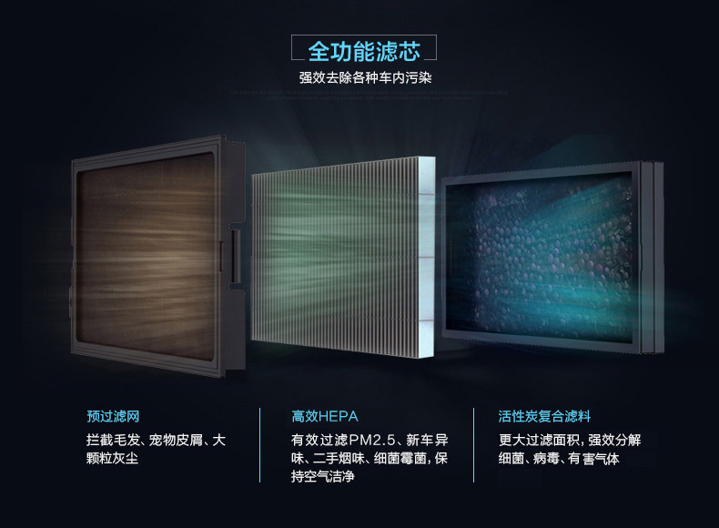 • 功能:消除异味 过滤灰尘 杀菌 吸收TVOC气体