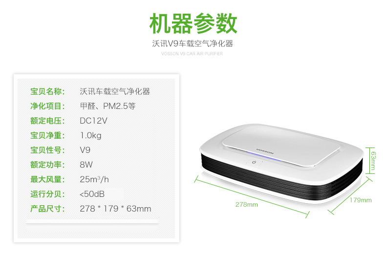 [居家母婴工厂店车用氧吧,空气净化器]沃讯V9车载空气净化器汽车空气净化器月销量0件仅售980元