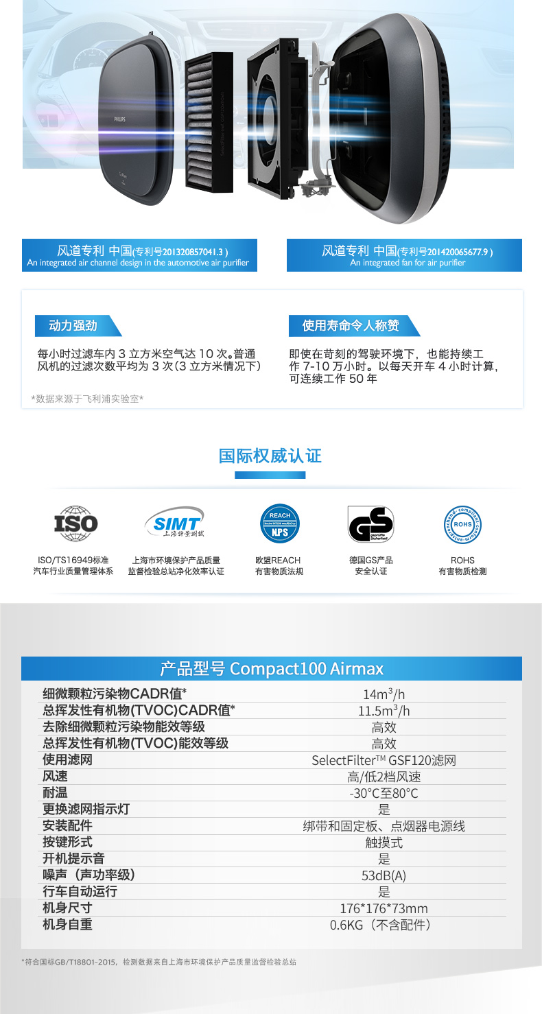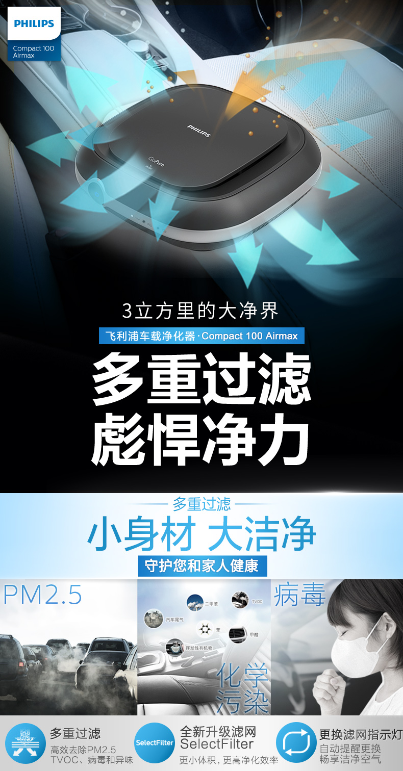 | 飞利浦车载净化器只卖499了 亲,当你选购一款车载空气净化器的时候第一考虑的是什么? 外观?效果?大小?香气?工作方式?还是所谓的负离子? 负离子产生过程中会有臭氧产生,人体吸入过多的臭氧是有危害的。飞利浦CP100Airmax,采用直接的过滤方式来净化空气,全新的过滤网能有效的吸附PM2.5、细菌、烟雾、粉尘花粉以及甲醛甲苯等挥发性化学有害物质,正真为您的健康着想。 Philips CP100Airmax是一款令人兴奋产品,无论外观设计以及内部硬件性能都达到了令人满意的效果。这也正是飞利浦从CP100到CP100Airmax保留CP100的初衷。 对品质做工的追求我们无比苛刻,对用户体验的优化我们从未停止,对服务的追求我们始终坚持做的更好。 现在,购买CP100Airmax即送大礼包一个。即刻拥有它,还您一路好空气! |