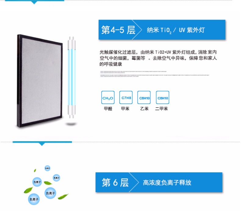 • 工作原理:活性炭负离子HEPA技术紫外线光触媒