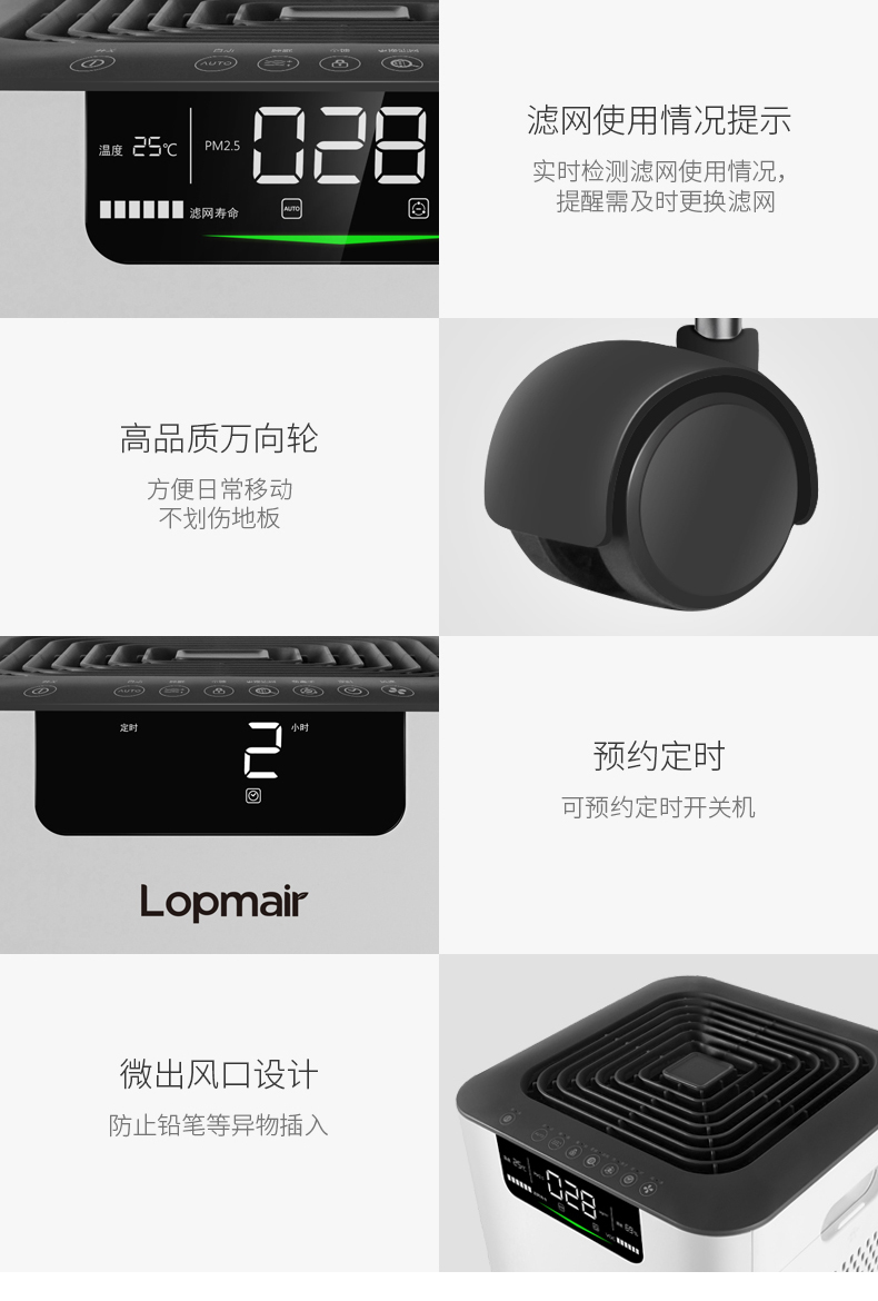 乐迈空气净水器外观好看,四个轮藏在里面,雅观。刚才评论忘了附上图片,现在补上。