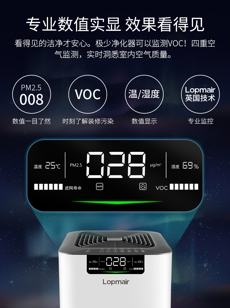 带着疑问购买了乐迈,也使用了几天才上来评价。宝贝外表大气,用起来方便。家里新装修了一个小书房给孩子,刚启用乐迈时,PM2.5的数值是一百多,用了几天,现在没超过20……看着这个数字就安心了许多。
