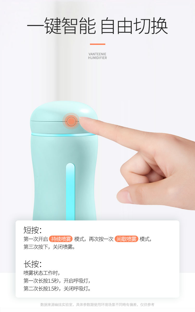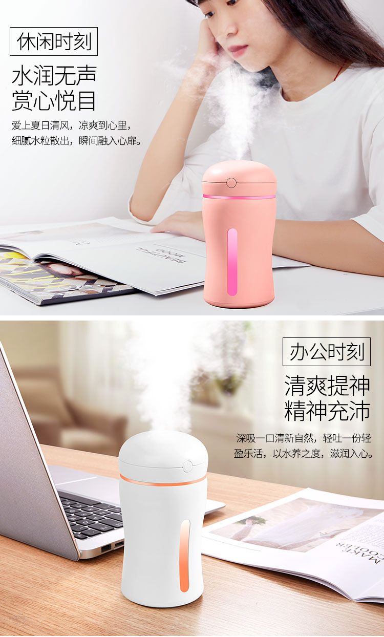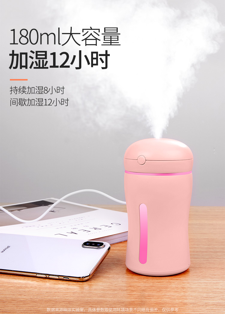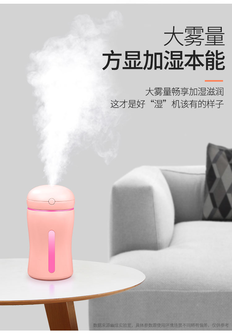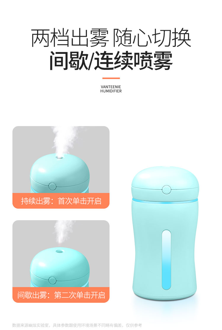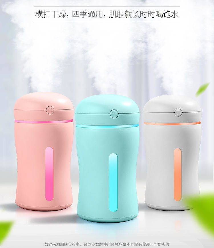 像个小水杯,小巧可爱,使用的持续喷雾功能,过一会儿出雾口会有水珠凝结,对持续喷雾略有影响,基本算满意吧