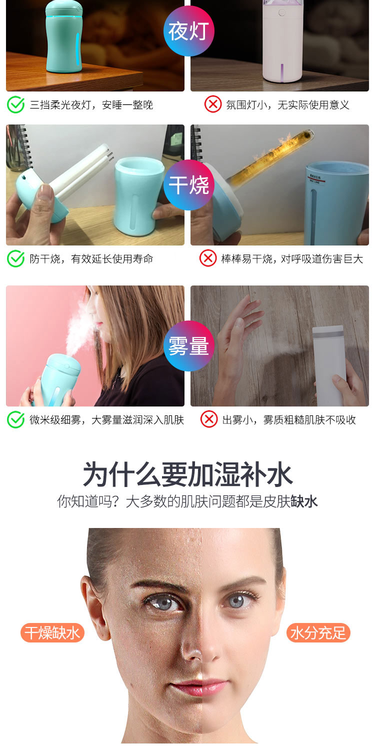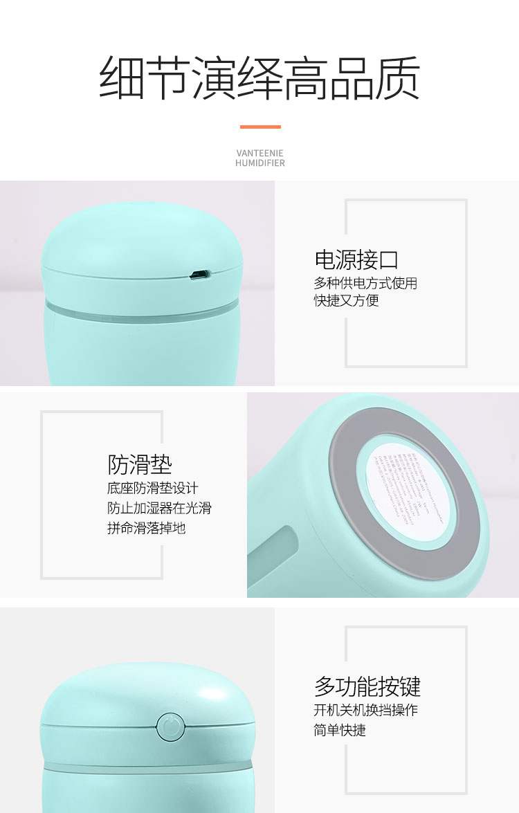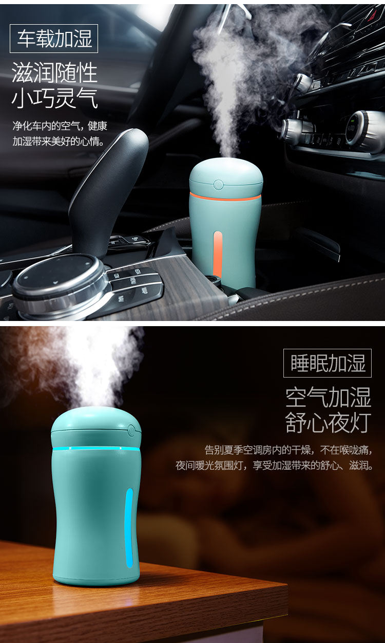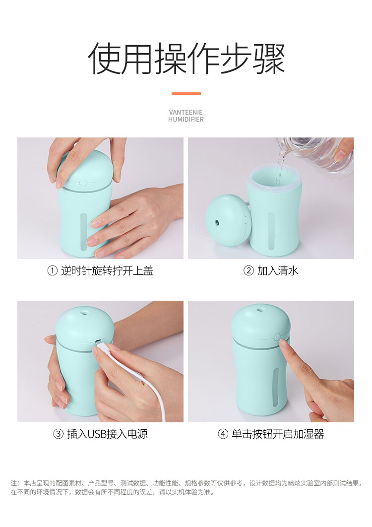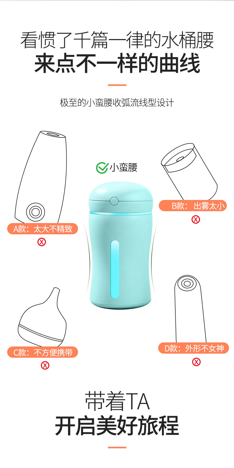 像个小水杯,小巧可爱,使用的持续喷雾功能,过一会儿出雾口会有水珠凝结,对持续喷雾略有影响,基本算满意吧