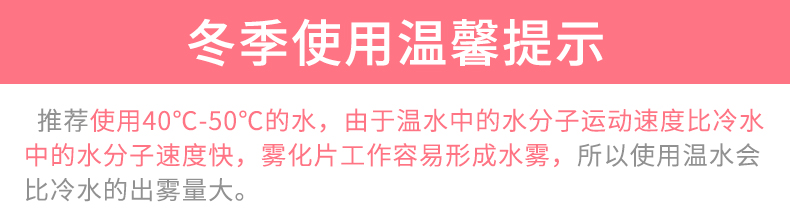 使用方便,雾气挺大的。而且价格一点也不贵,女生们的最爱,天干物燥一定要补水。放在办公室 随时开着 增加点空气湿度 喜欢的可以下手了!喷雾也很好也不算小的,颜色和灯光都好看。