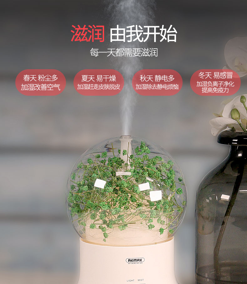 因为整天待在空调房里嘛,皮肤就会特别的干燥,这款加湿器正好缓解了皮肤干燥的问题。值得购买。还有防干烧功能,非常好用。很好看,以后开空调就不会感觉干燥了,出气孔很大,水雾也可以,加湿器很小巧实用,样式也挺好看的。