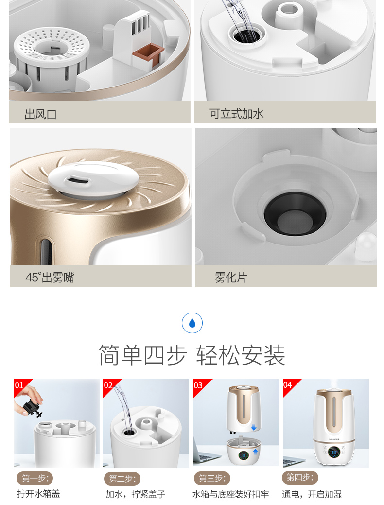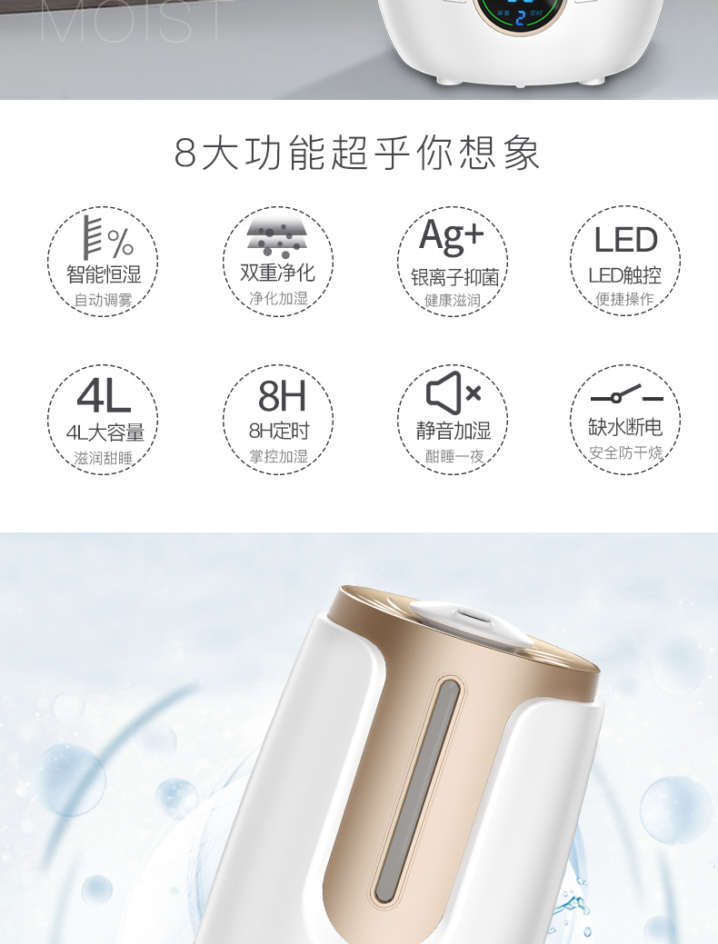 (82)[伟盛电器商城加湿器]空气加湿器家用静音卧室除螨杀菌大雾量月销量99件仅售288元