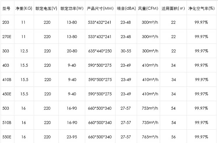 5.机器的净化能力参数上 :203=303、403=410B、503=510B410B=403+HEPA滤网一套 (403标配smokestop,410B标配HEPA加送smokestop),510B=503+HEPA滤网一套(503标配smokestop,510B标配HEPA加送smokestop)。