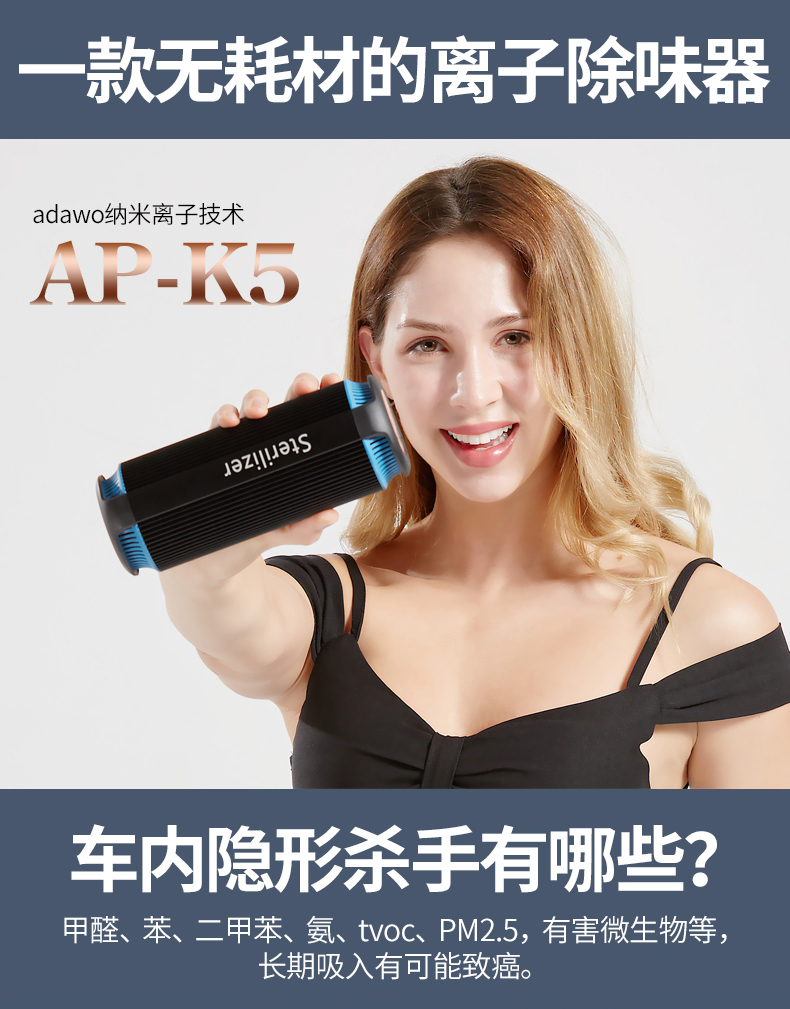 德国车用无耗材车载空气净化器除甲醛异味负氧离子杀菌负离子Tvoc
