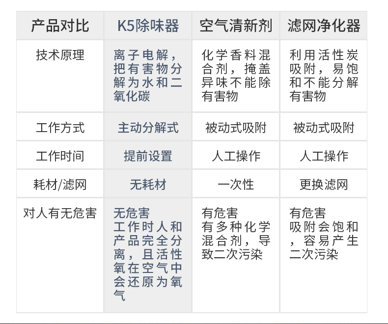 • 工作原理:静电技术 臭氧 其他