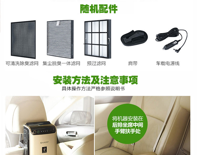 夏普车载空气净化器FU-GEM1H-N/GEM1N-B除甲醛PM2.5雾霾异味滤网