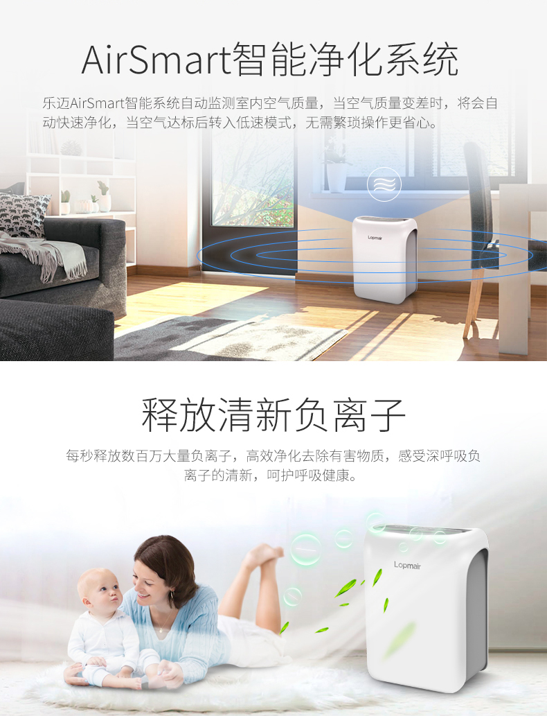 选了好久最后决定入手乐迈,用了一段时间后感觉选对了,一键开启,PM2.5读数清晰可见,还有睡眠模式,夜晚睡觉很安静,效果不错