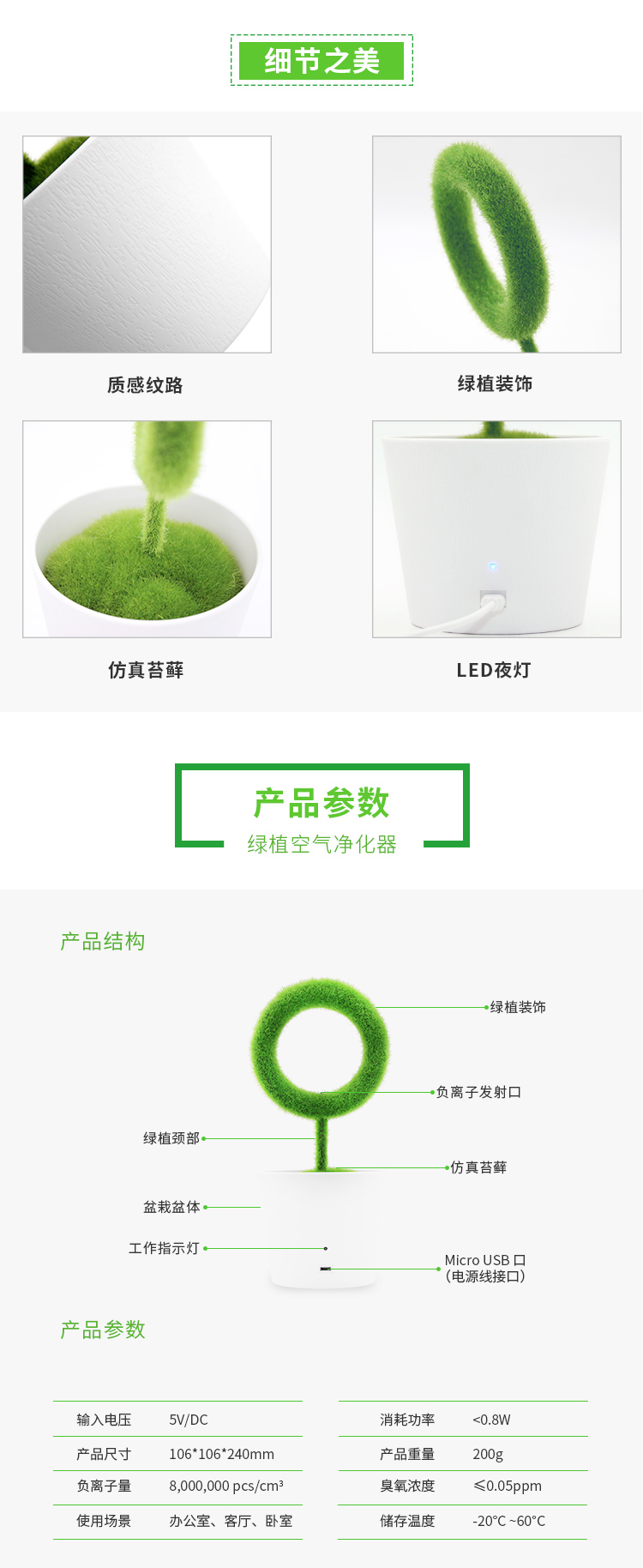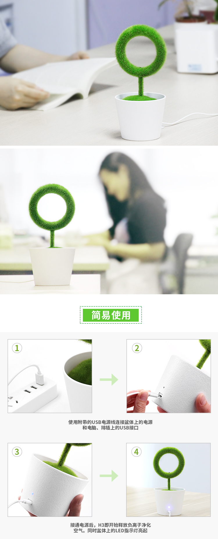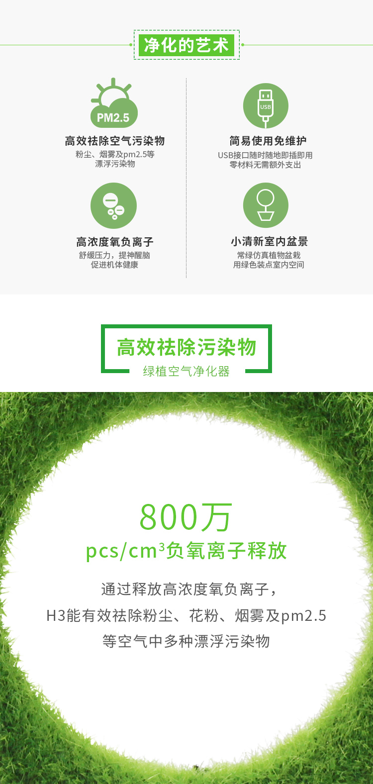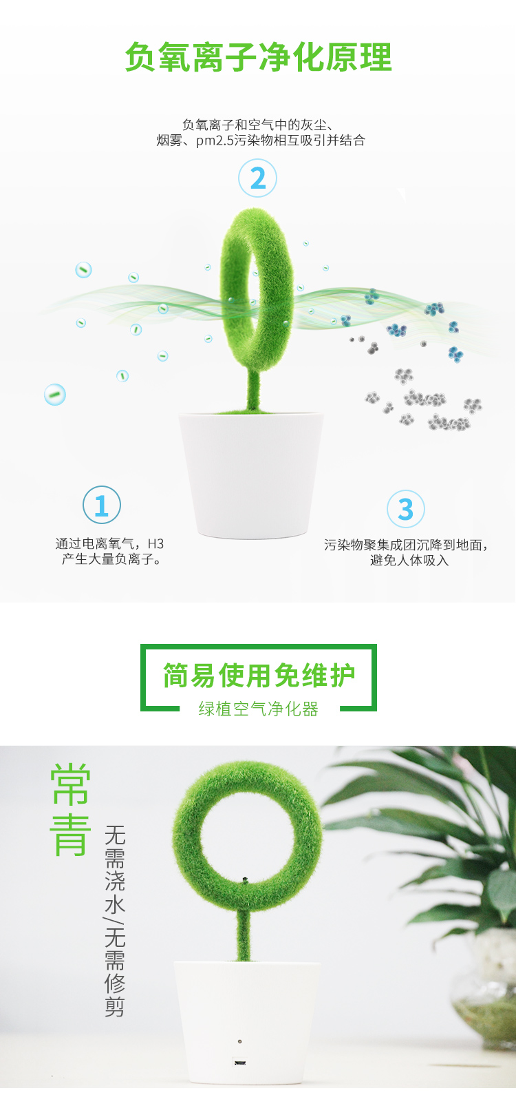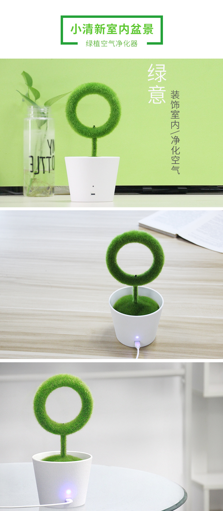 仿真绿植房间卧室PM2.5清新器室内小型桌面负离子空气净化器家用