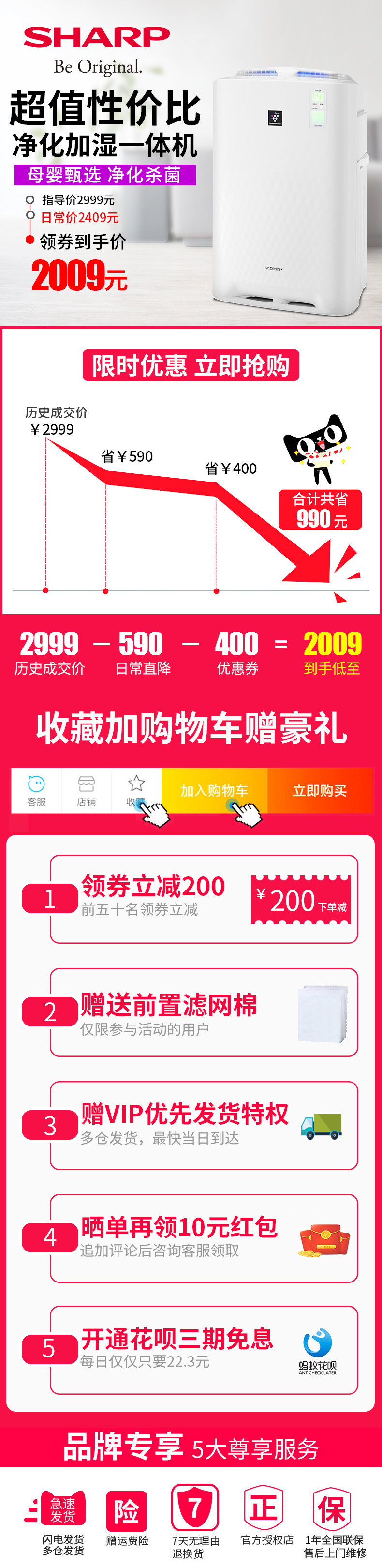 (72)[夏普荣拓专卖店空气净化,氧吧]夏普空气净化器家用W38月销量99件仅售2299元
