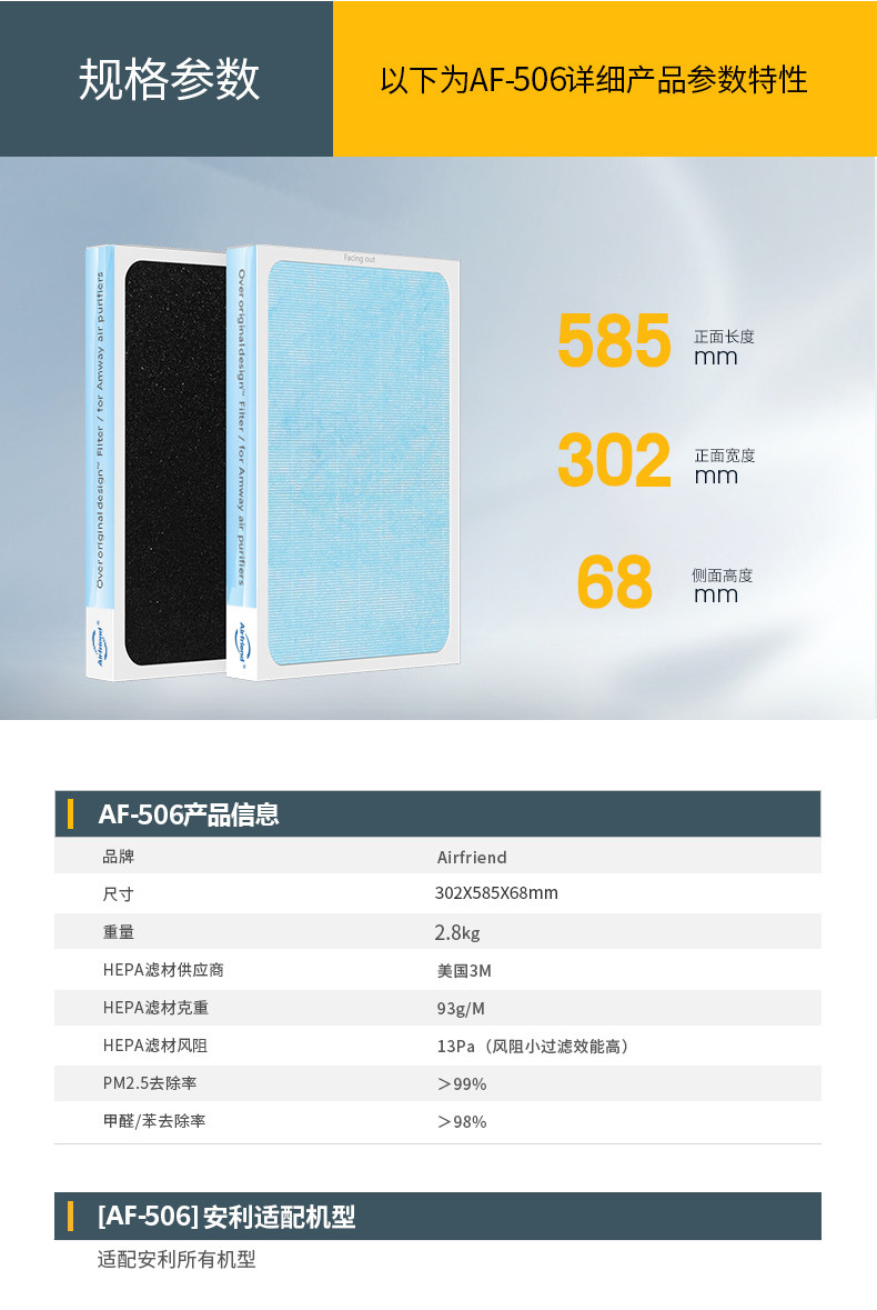[布鲁雅尔安利滤网专售店净化,加湿抽湿机配件]新款适配安利全系列空气净化器复合型过月销量1件仅售299元