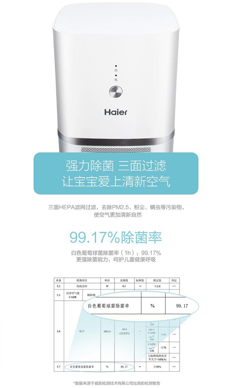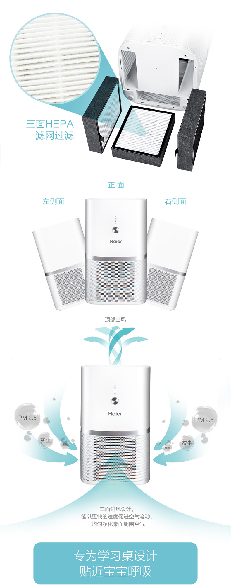 不错的净化器,自己试用了一下,感觉净化效果可以,出来的风挺清新的,用PM2.5的检测仪检测了一下,出来的风非常干净,准备再给孩子买一台放她书桌上,最近幼儿园感冒的挺多的,老师推荐使用净化器,希望会有好的效果。