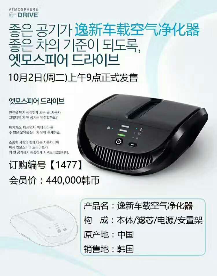 [婷柒品质生活馆 可韩国直邮店铺空气净化,氧吧]韩国安利正品逸新车载空气净化器车用空月销量1件仅售2300元