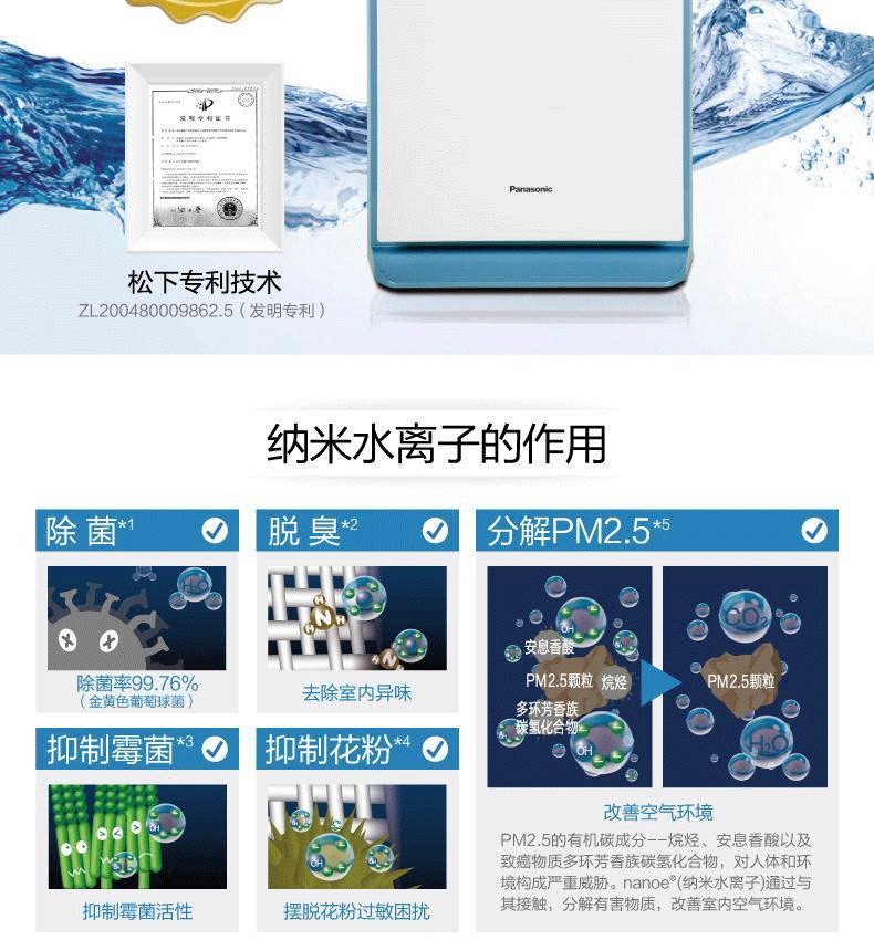 [热情家空气净化,氧吧]松下空气净化器家用卧室加湿静音除甲醛月销量0件仅售2180元