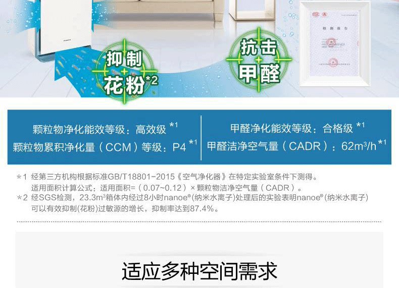 • 功能:缺氧监测 除花粉 除甲醛 除烟除尘 杀菌 加湿 加氧