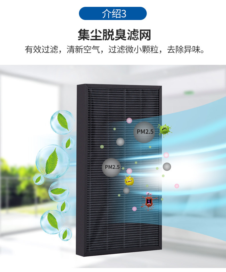 • 功能:除VOC 除花粉 除颗粒物 除甲醛 除烟除尘