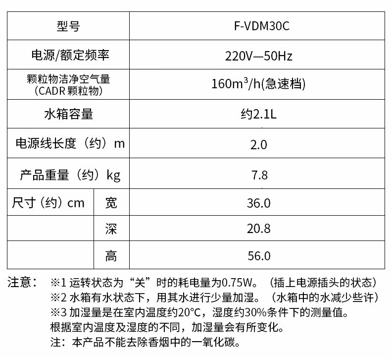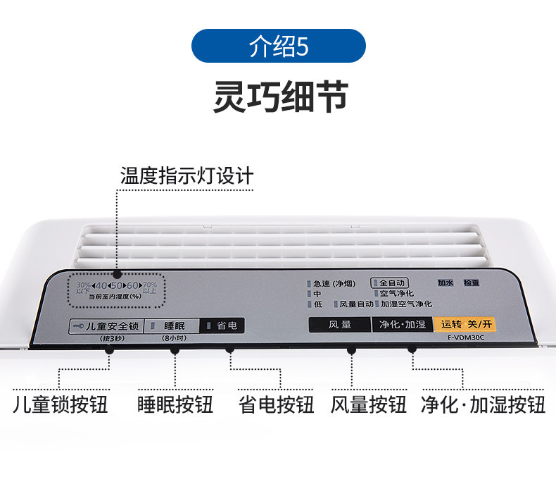 Panasonic/松下VDM30空气净化器除甲醛除雾霾PM2.5二手烟尘加湿