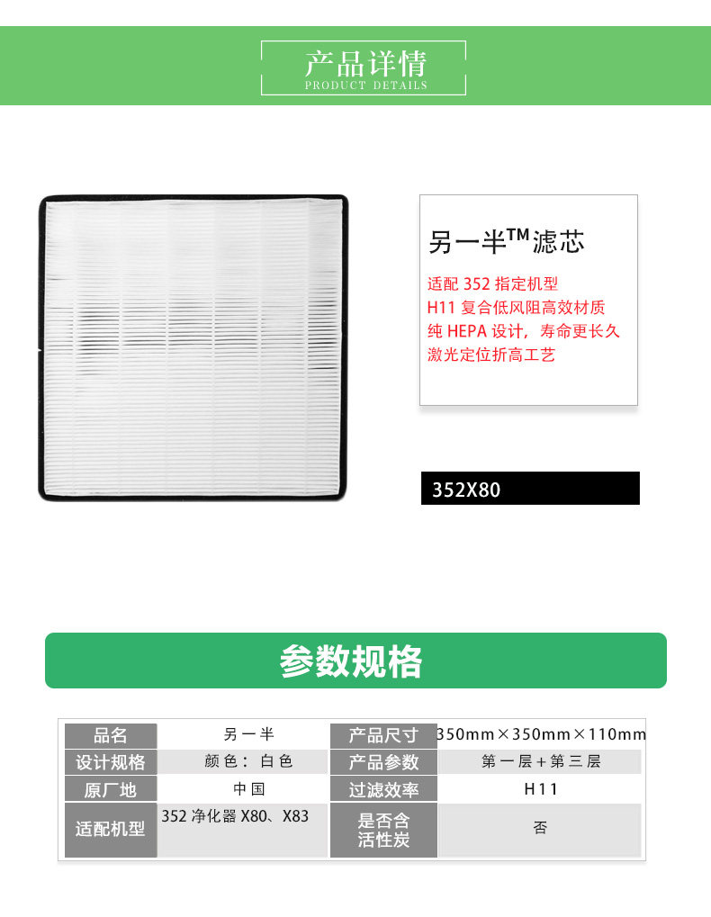 352 标准滤芯套装 空气净化器滤芯 适用于X80 X83 另一半