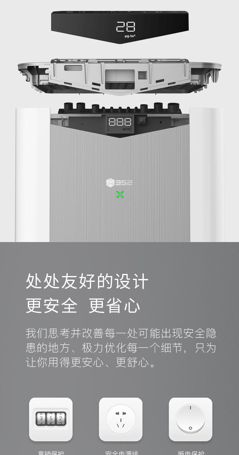 外观设计非常简洁,是我喜欢的风格,声音也很轻,净化效果也不错