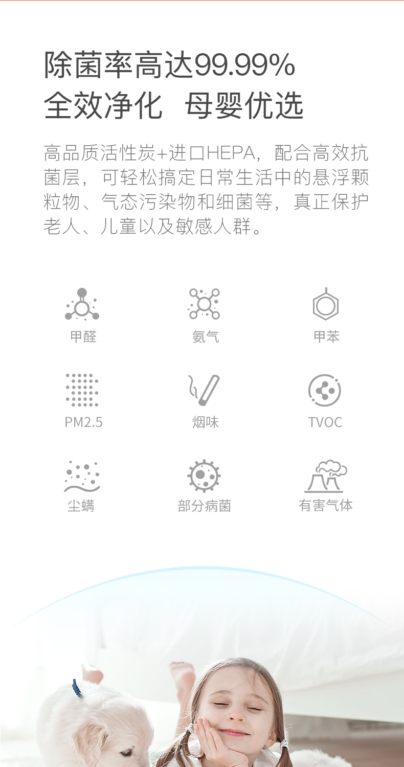 首先物流特别快,第一天下单,第二天一早就收到了。打开之后发现完全超乎想象,我竟然想用“精致”这个词来评价一台净化器~ 净化效果也很好,夜里开的睡眠模式,分贝很低,声音和风量都不会影响孩子睡眠,非常棒!