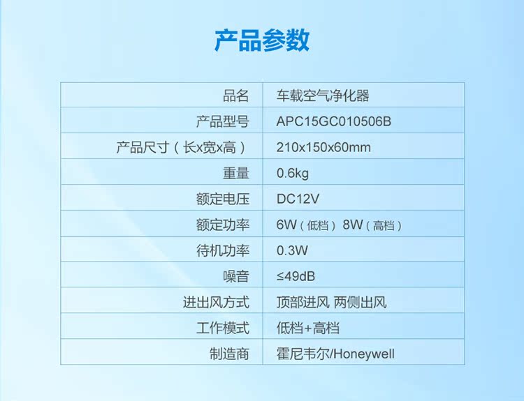 Honeywell霍尼韦尔APC15GC010506B车载空气净化器除异味甲醛PM2.5