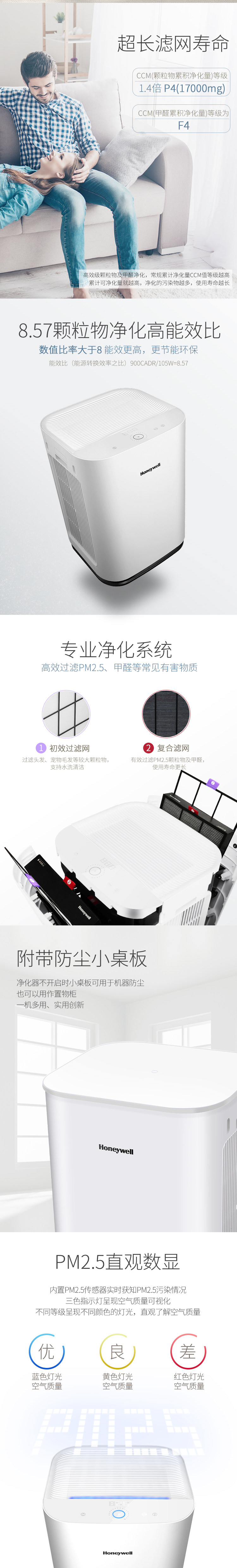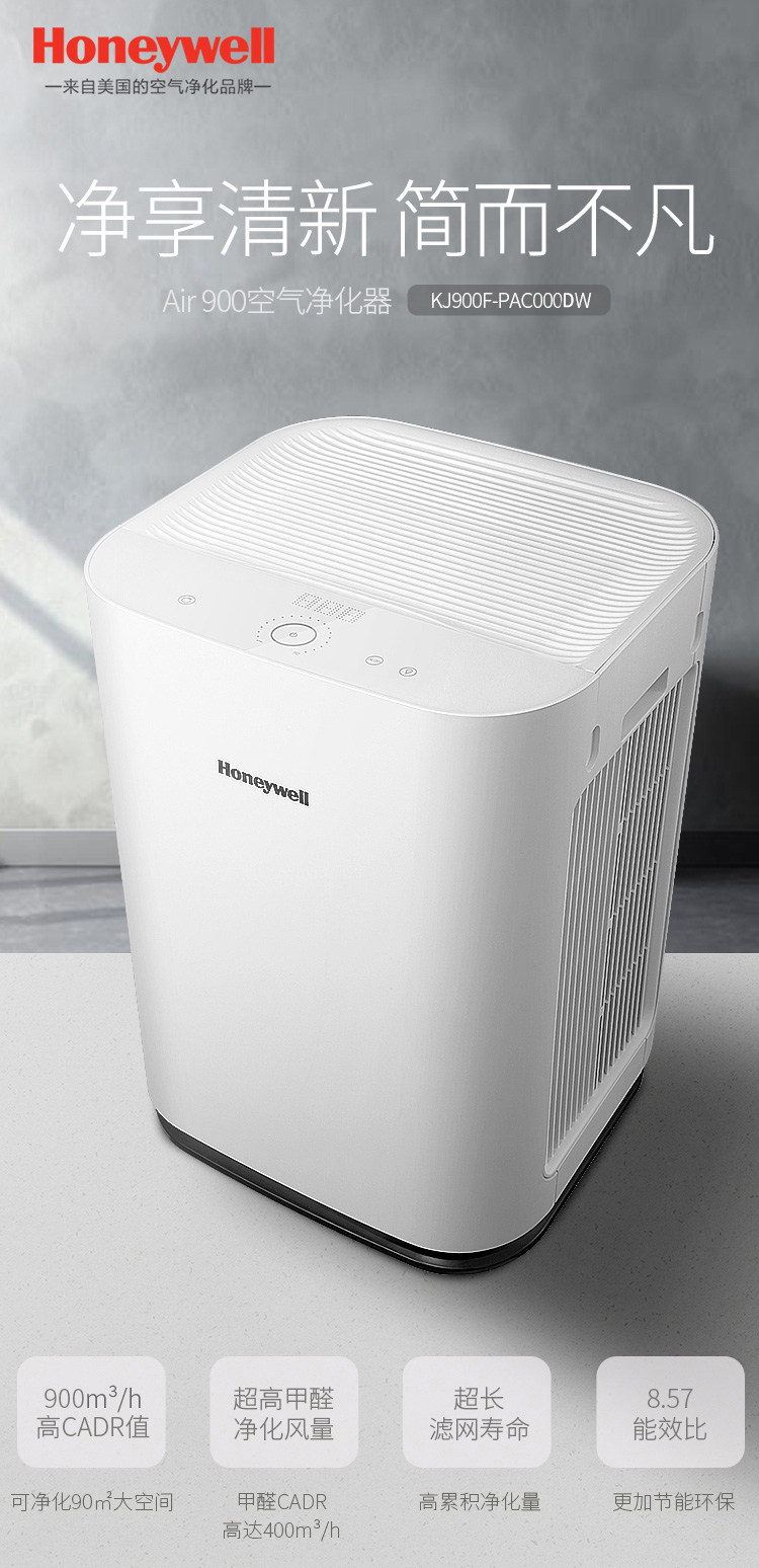 霍尼韦尔KJ900F-PAC000DW高效能空气净化器 高CADR900/高甲醛净化