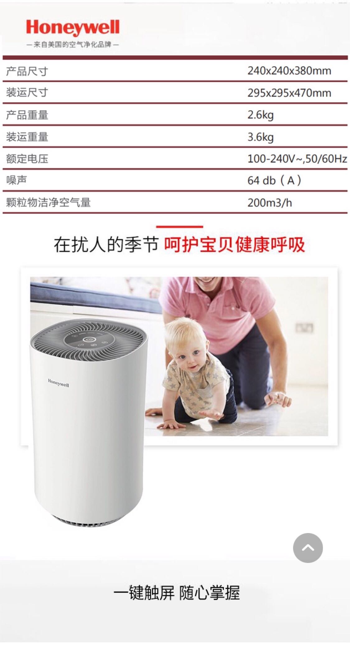 [正品全新折扣店铺空气净化,氧吧]招行10元风暴 霍尼韦尔家用空气净化月销量0件仅售480元