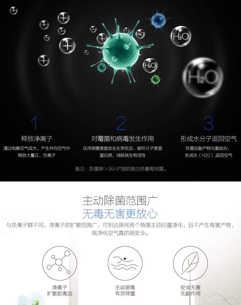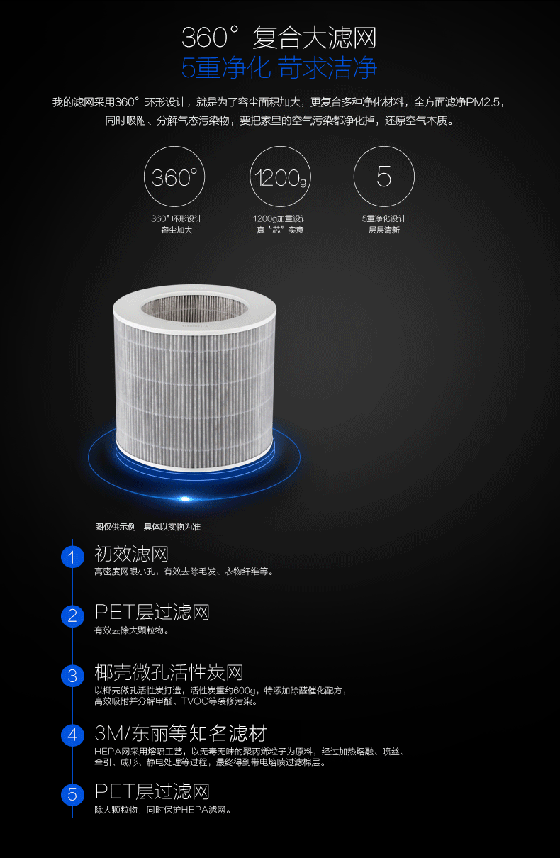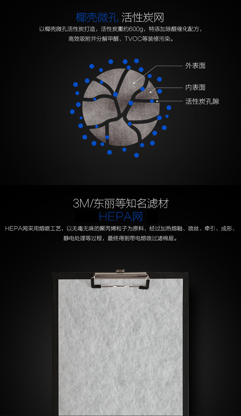 • 工作原理:活性炭负离子HEPA技术光触媒