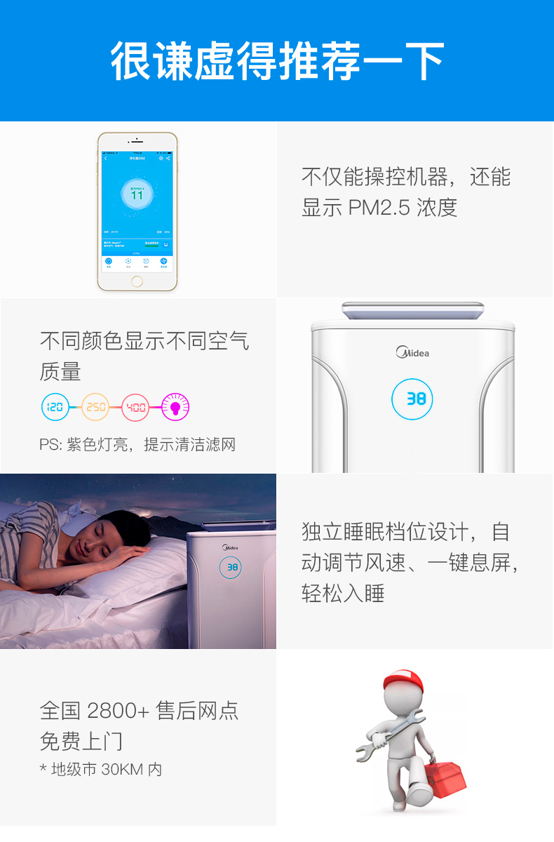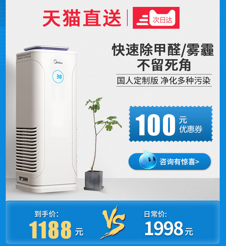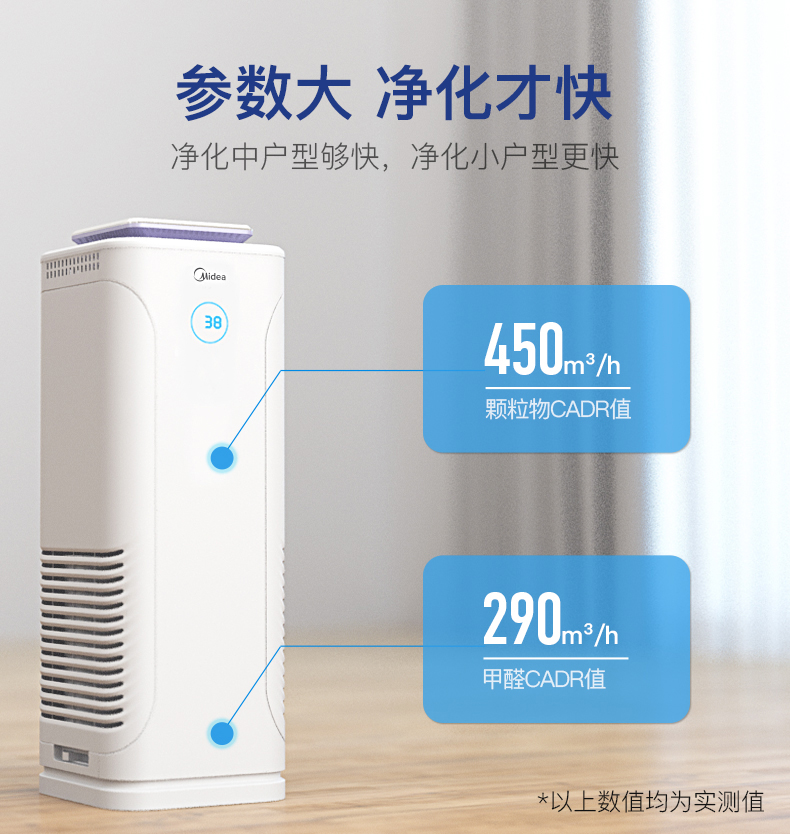 [品牌家电批发商城空气净化,氧吧]美的空气净化器家用去除甲醛二手烟pm月销量2件仅售1288元