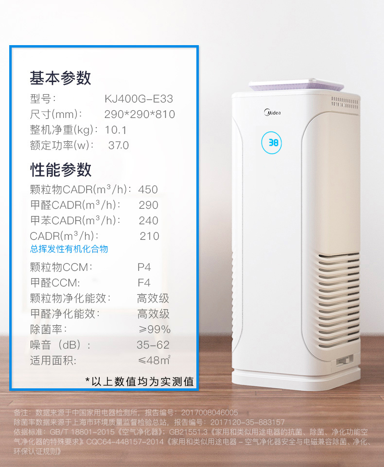 美的空气净化器家用去除甲醛二手烟pm2.5雾霾尘卧室客厅净化机E33