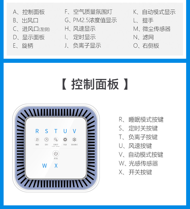 • 功能:定时 除VOC 除花粉 除颗粒物 除甲醛 除烟除尘 杀菌 加氧
