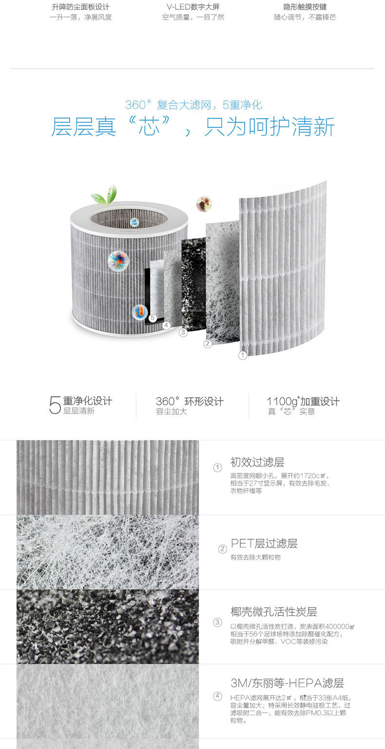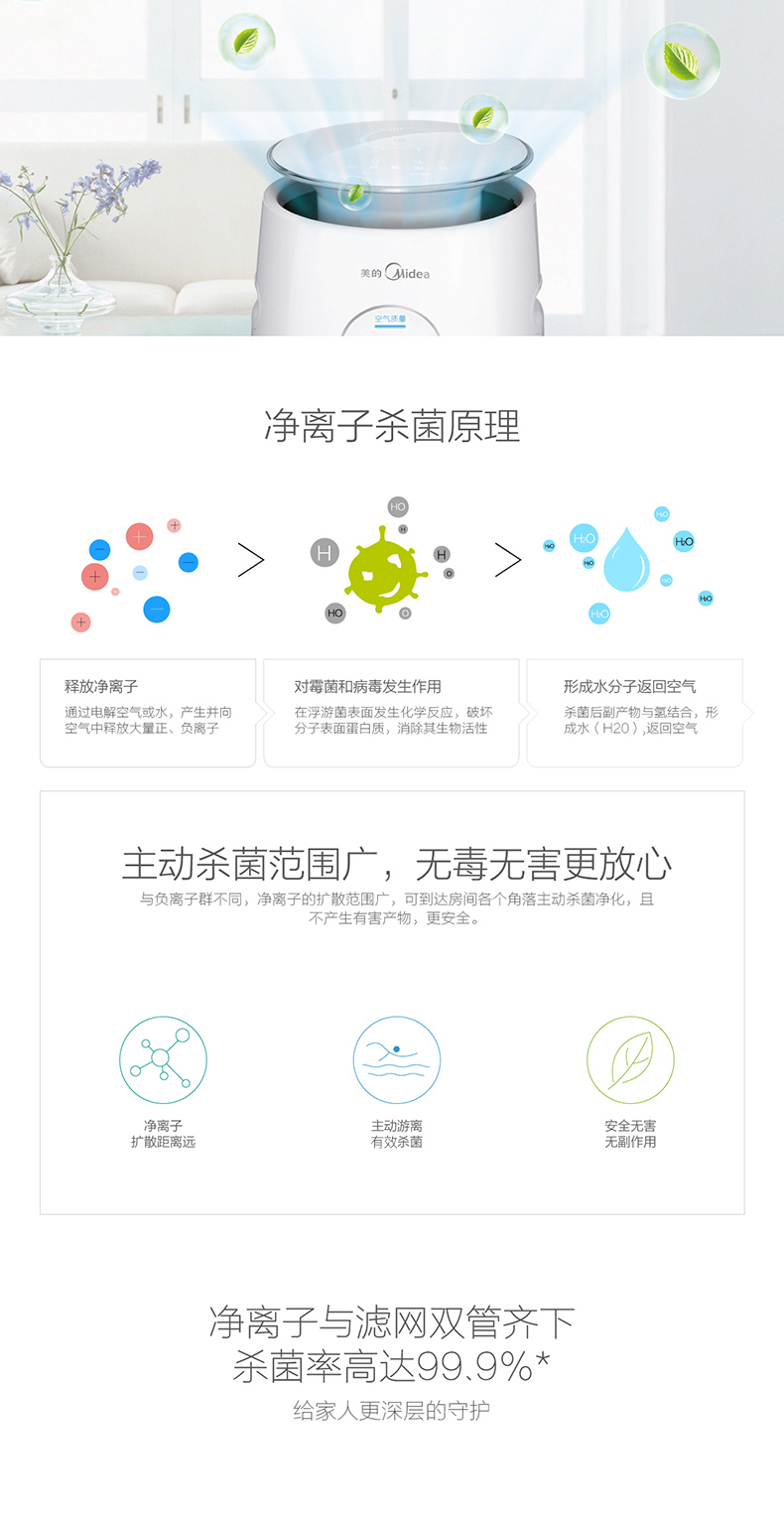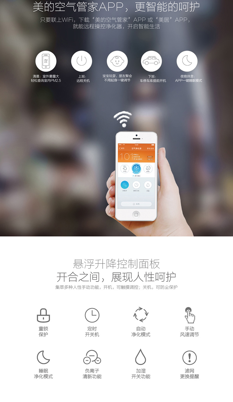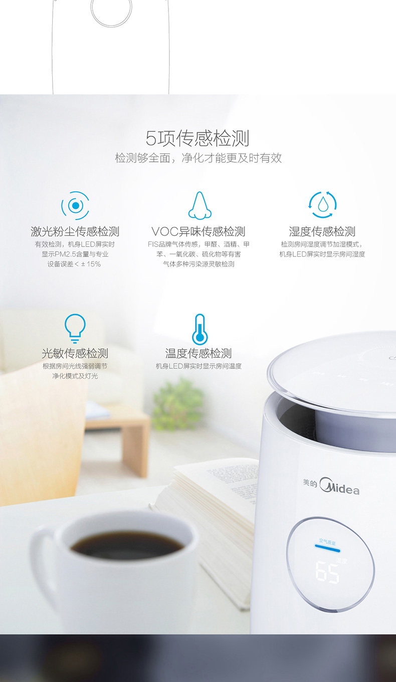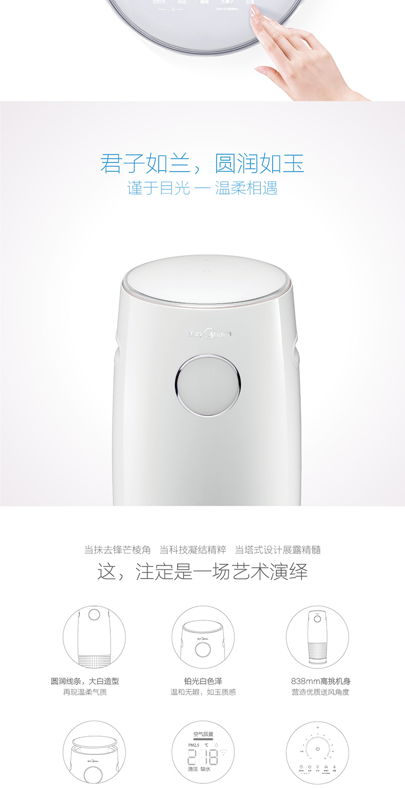• 功能:定时除花粉除甲醛除烟除尘加湿