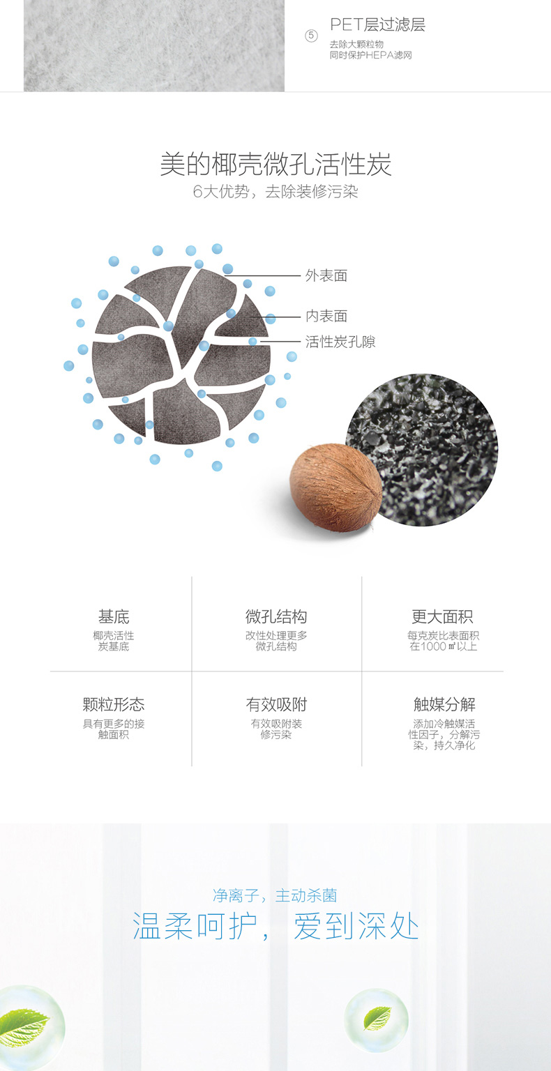• 工作原理:活性炭负离子HEPA技术光触媒