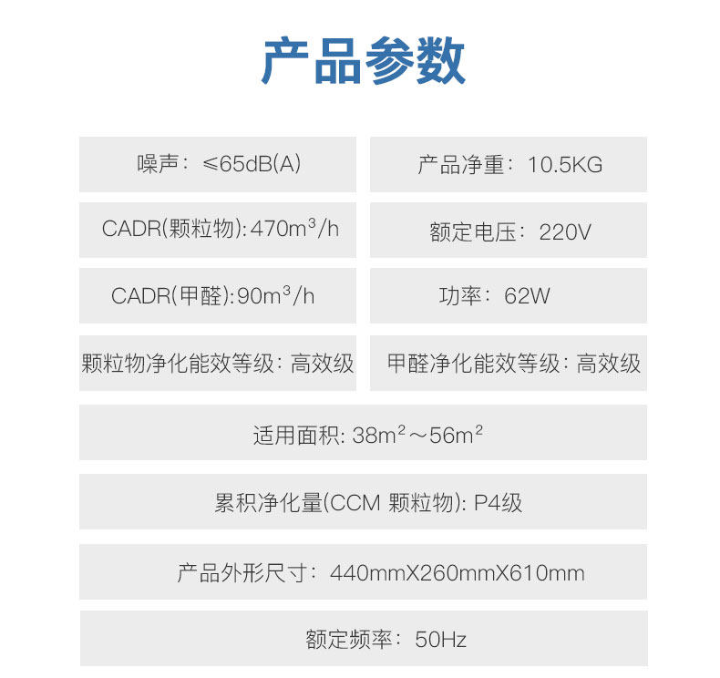 • 空气净化能效等级:高效级