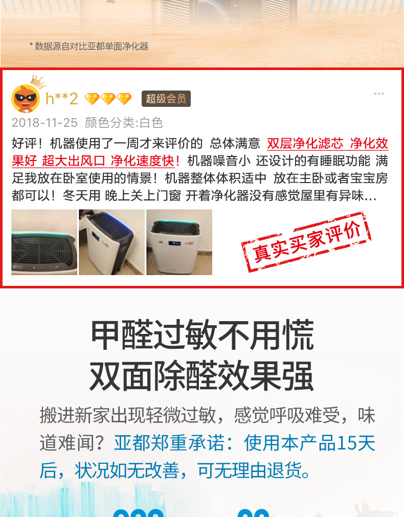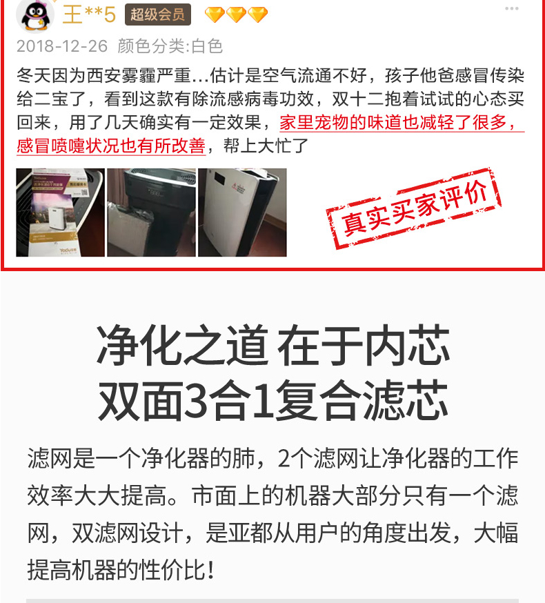 做工很细致,体积大小正合适。同事介绍亚都很好用,我自己也对比了很多品牌。双面滤芯,效率更高。很满意。发货也很快。没有因为正值春节期间耽误发货。