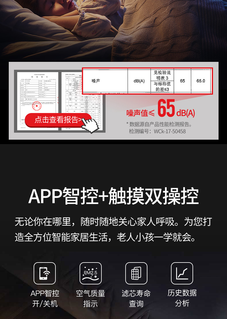 机器静音,可以远程监控机器,很方便,用了一下,从室内轻度污染,到现在的优质空气,很好。效果明显。老品牌,就是棒