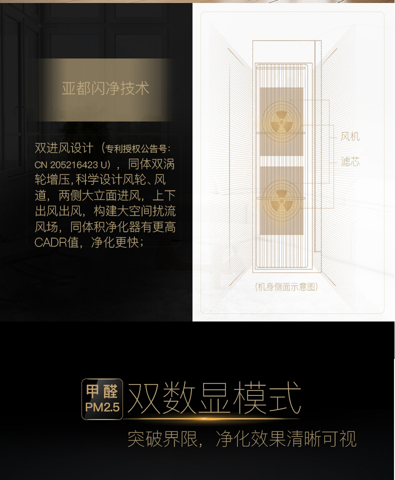 亚都空气净化器KJ1660G-P16DD 双面钢铁侠会议室别墅大面积正品