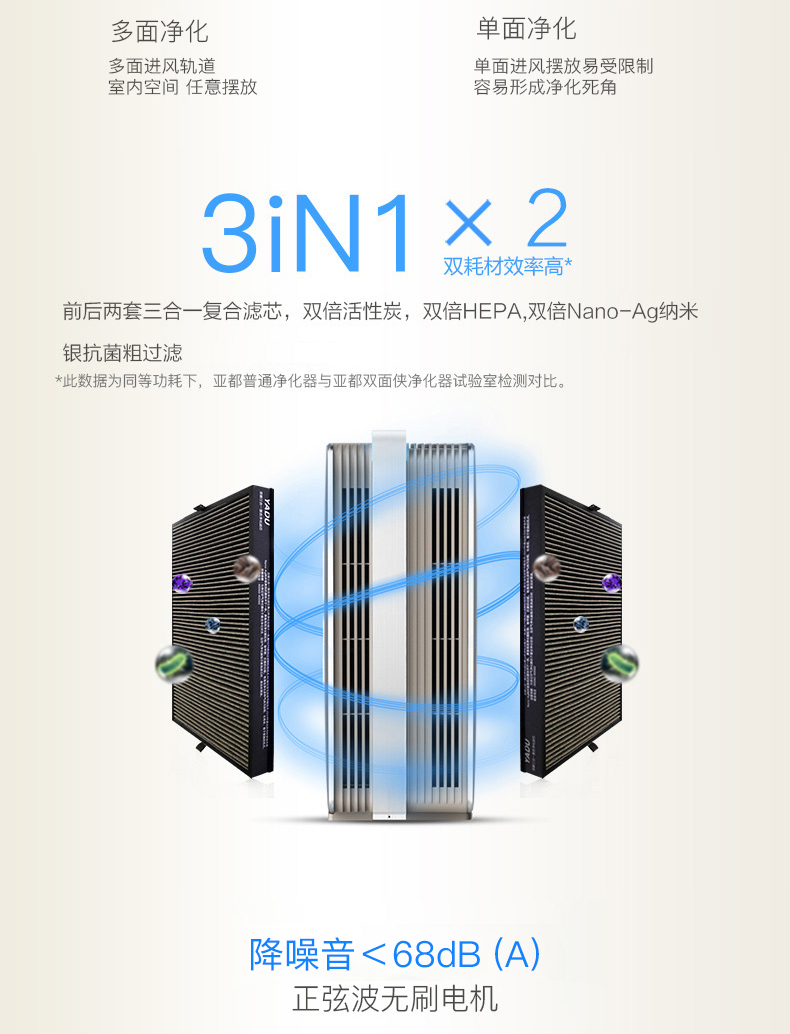 亚都空气净化器 KJ600G-P5 双面侠 高效三合一滤网除甲醛除PM2.5